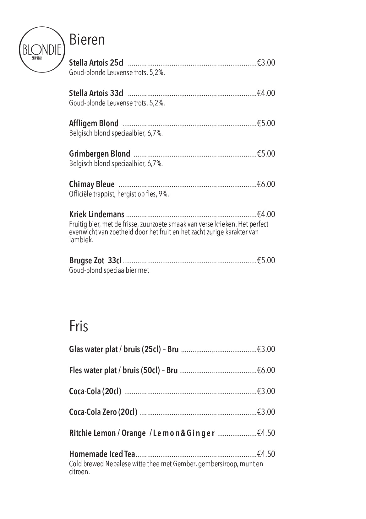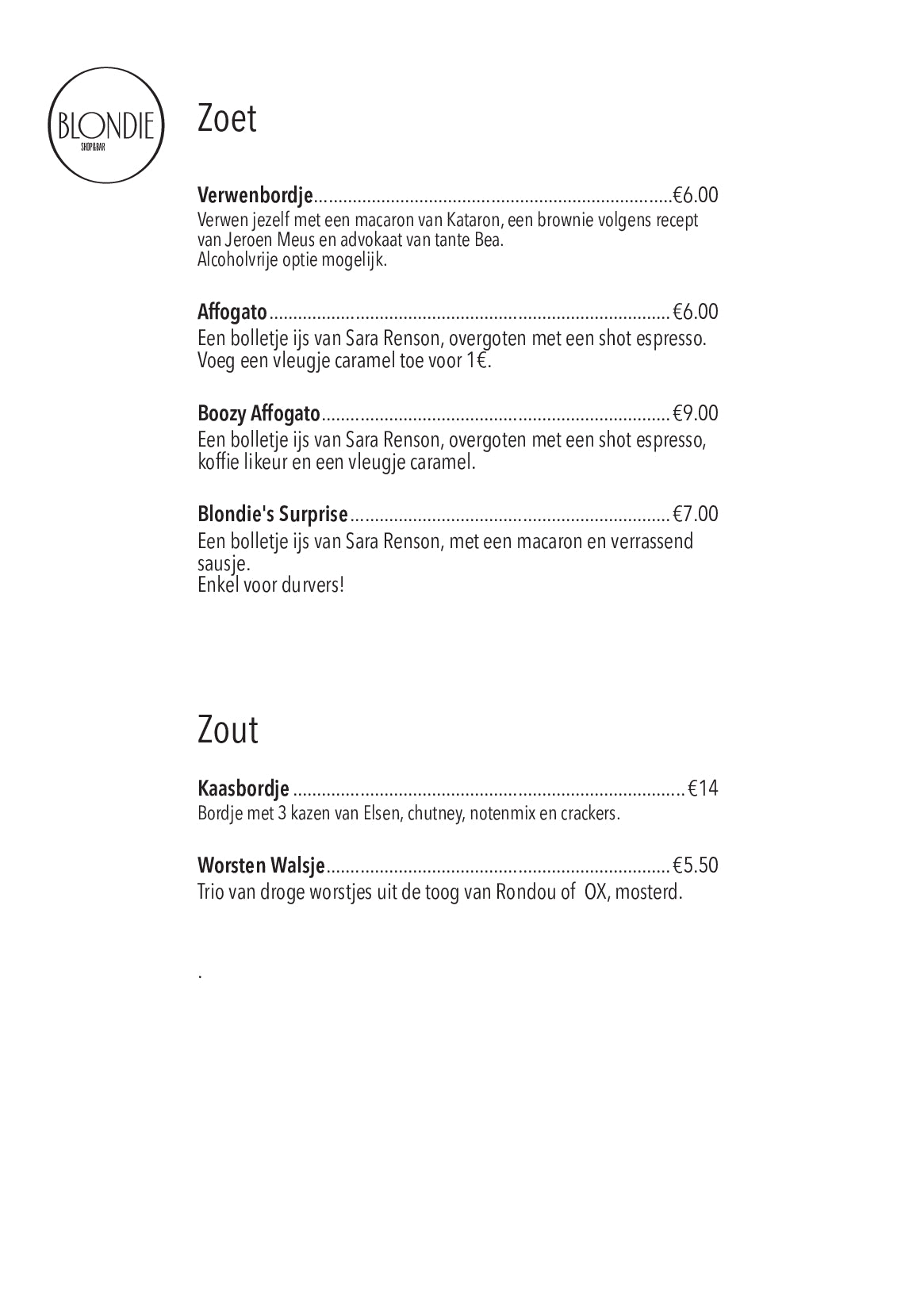 Klinkt een Caramel Café Brulée, een Magical Mandarin of een Side Car als iets wat je echt eens wil proberen? En heb je daar graag een zoetje of zoutje bij? Les je dorst en stil je goestingske met de meest originele en lekkere mocktails, cocktails en koffie's in de BL0NDIE Bar. Geen paniek, er is ook water en wijn. En bier en limonade.